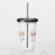 This fun and fabulous acrylic tumbler is surrounded by cute watercolor pen and ink pink flamingos! You have your choice of colour for the lid and straw.