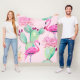 Pink flamingo, exotic birds, gentle flowers, rose, fleece blanket