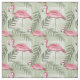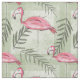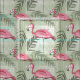 These pink lawn flamingos are surrounded by palm leaves on a lush green background with lightly printed pale squares. They'll bring a whimsical touch of summer to most projects, at any time of year.