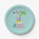 Pink Flamingo In A Santa Hat By A Palm Tree Paper Plate