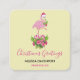 Pink Flamingo in Santa Hat Whimsical Christmas Square Business Card