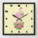 Pink Flamingo in Santa Hat Whimsical Christmas Square Wall Clock