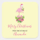 Pink Flamingo in Santa Hat Whimsical Kitchen Square Sticker