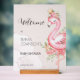 Celebrate the arrival of a little princess with this adorable pink flamingo baby shower welcome sign! Featuring a charming watercolour flamingo wearing a floral crown and golden tiara, this design exudes elegance and fun, making it perfect for a tropical, floral, or girly-themed baby shower. The poster is fully customizable with the mom’s name and event date.