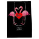 Pink Flamingo Love Design - Black Gift Bag - Medium
