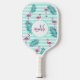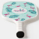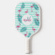 Pink flamingo mint green stripes palm leaves pickleball paddle