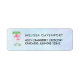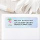 Address labels with an illustration of a momma and baby pink flamingo standing on a bed of floral succulent flowers with green palm trees swaying in the back.