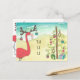 Pink Flamingo on Sandy Beach Holiday Greeting Card