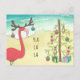 If you're on a tighter budget than usual this year, but you'd like to send holiday greetings to the family and friends you left up north, here's a solution... a Christmas postcard. Our fun card displays a bright red flamingo decked out in reindeer antlers that are decorated with ornaments. A Christmas tree with gift boxes underneath makes it even more clear that this is a Christmas card. Text on front and back can be personalised with your own wording.