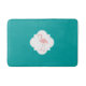 A teal and pink lined ornate banner has a pink flamingo at the centre on this pretty bath mat. The banner is placed on a dark teal blue background. This mat matches a shower curtain and other products in our store.