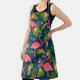 Pink flamingo ornament on a striped turquoise background. Decorative ornament. illustration.