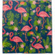 Pink flamingo ornament on a striped turquoise background. Decorative ornament. illustration.