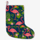 Pink flamingo ornament on a striped turquoise back small christmas stocking