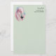 A lovely pink flamingo rendered in soft pastel with green accents embellishes this easy to personalise stationery with a tropical flair.