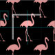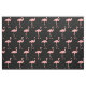 Pink flamingo pattern textile fabric. Custom printed textile. Fun DIY project supplies and accessories for adults and kids. Make your own clothing, decorations and more. Tropical bird design with black background.