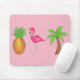 Mousepad features an original illustration of a pineapple, palm tree, and tropical pink flamingo.