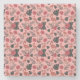 Pink flamingo seamless pattern flowers and leaves stone coaster