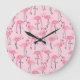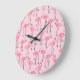 Pink Flamingo Set, Tropical Summer Pattern. Large Clock