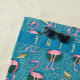 This pretty, original flamingo pattern has a retro Art Deco twist with a geometric motif. Made in bright shades of pink, golden yellow and green on a field of turquoise blue, this elegant, tropical pattern also includes fern fronds. Personalise this beach towel with your name. When you use the text template, your name will appear on both ends of the towel (upside-down at the top, for easy viewing while you're sunbathing). Head to the beach in style with this beautiful flamingo towel!