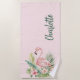 Pink flamingo tropical flowers beach towel