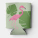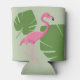 Pink flamingo Tropical Green leaves Can Cooler