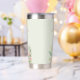 Pink flamingo tropical monogram sage green insulated tumbler