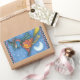 PINK FLAMINGO WITCH, FLYING OVER MOON ON A BROOM RECTANGULAR STICKER