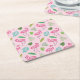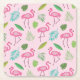 Pink Flamingo with Tropical Leaves Pattern Square Paper Coaster