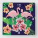 Tropical flamingo birds, flowers and palm leaves square wall clock