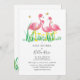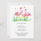 Charming modern baby shower invitation features pink flamingos and butterflies on both front and back. Click to customise further to change font style, size or colour.