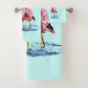 Bath Towel Sets with Couple Pink Flamingo Love Dance - Customisable - or Choose / Add Your Unique Text / Name / Colour / Font / Size / Elements - Make Your Special Bath Towels Gift - Resize and move or remove and add elements / text with Customisation tool ! Painting and Design by MIGNED. Please see my other projects / paintings. You can also transfer my designs to more than 1000 Zazzle products.