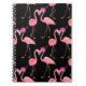 Experience the tenderness of two pink flamingos against a black background in this vintage seamless pattern.
