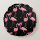 Pink Flamingos: Black Background Vintage Round Cushion