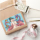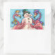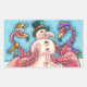 PINK FLAMINGOS MAKE SNOWMAN, FUNNY CHRISTMAS BIRDS RECTANGULAR STICKER