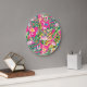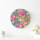 Pink Flamingos Tropical Botanical Butterfly Garden Large Clock