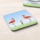 Pink Flamingos & Tulip Flower on Light Blue Coaster