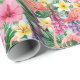 A Beautiful Tropical Pattern Of Pink And Yellow Flowers With Pink Flamingo Wrapping Paper For Birthdays Or Showers
