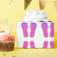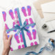 pink flip-flops with blue flower wrapping paper