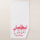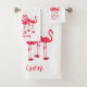 Whimsical name personalised gaggle of pink flamingos towel set. If you need assistance with placement or customising, please use the "Contact This Designer" link on the right hand side of this page.