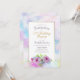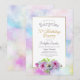 A blue and pink floral surprise 70th birthday party invitation featuring a gold and pastel painted watercolor border.