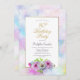 A blue and pink floral 80th birthday party invitation featuring a gold and pastel painted watercolor border.