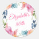 Pink Floral 80th Birthday Party Favour Classic Round Sticker