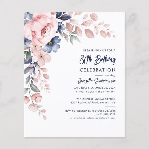 Pink Floral 80th Birthday Party InvitationsDesigned by S A Holmes