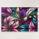 Pink Floral and leaves Stained Glass Look Jigsaw Puzzle