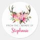 Pink Floral antlers library bookplate + name Classic Round Sticker