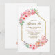 Celebrate your birthday and invite your friends and loved ones to afternoon tea with this elegant gold geometric framed pink floral birthday party invitation. You can include any age in the invitation template.
