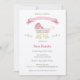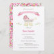 A darling customisable baby shower invitation featuring a pink floral baby carriage. Matching bookplate, address label and favour sticker
