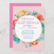 Colourful Spring Flowers Baby Shower Invitation. This cute design is surrounded with pretty teal blue, pink, and yellow flowers. Add your party details to see what your invitation will look like before purchase. Our template makes it easy to change the wording for your baby shower.