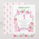 Pink Floral Balloons 1st First Birthday Invitation