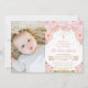 Pink Floral Baptism 1st Birthday Party Photo Invitation